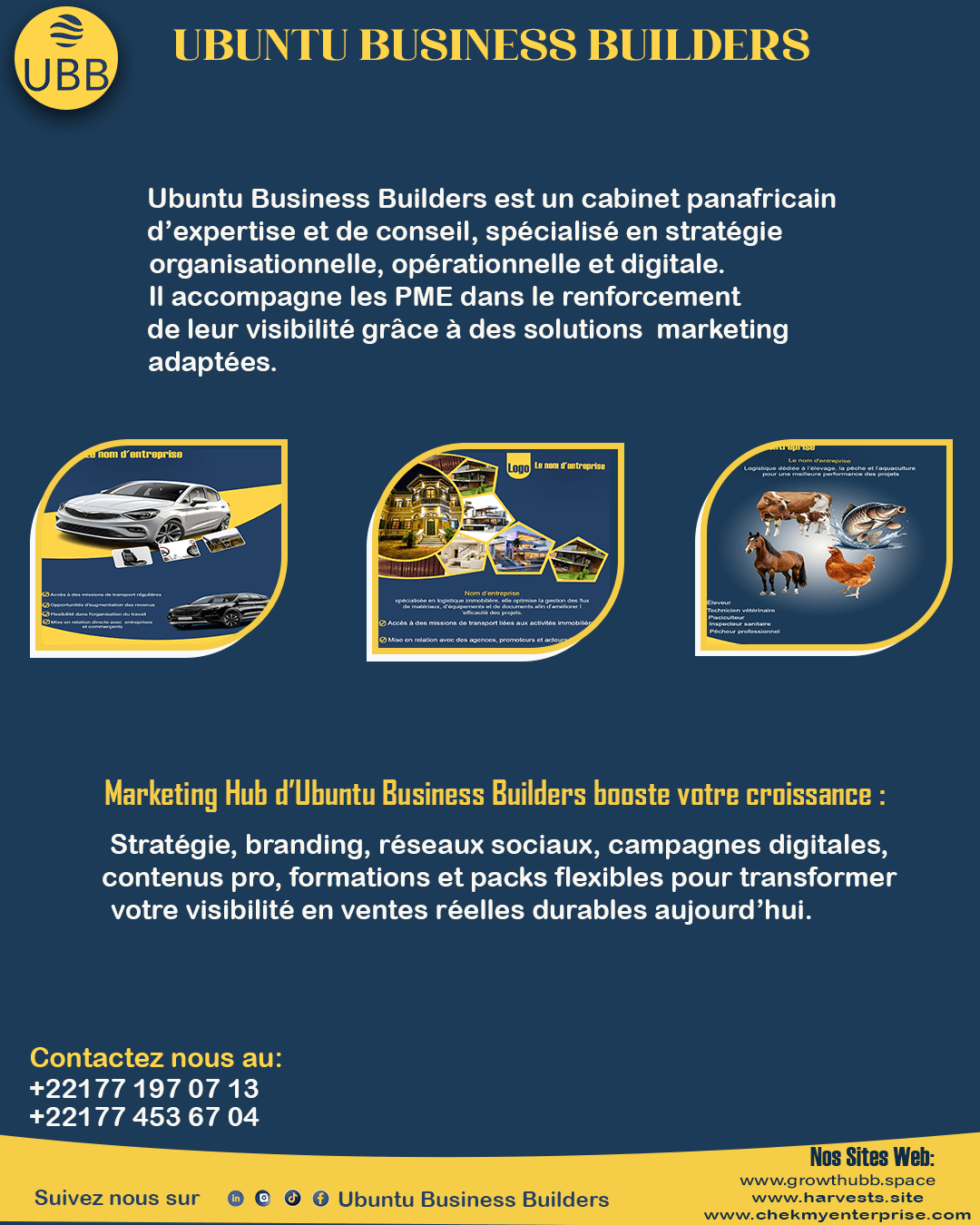 VitalCHECK(www.checkmyenterprise.com), notre application de diagnostic automatique et immédiat, permet aux PM africaines d’évaluer en quelques minutes leur état de santé opérationnel. À travers ces deux solutions, UBB renforce son engagement pour la transformation digitale et économique de l’Afrique.